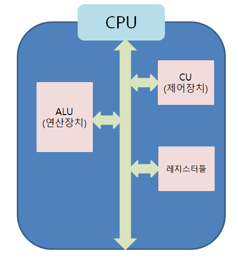 - 제어장치가 레지스터에 있는 값을 계산하라고 산술논리연산장치(ALU)에 명령