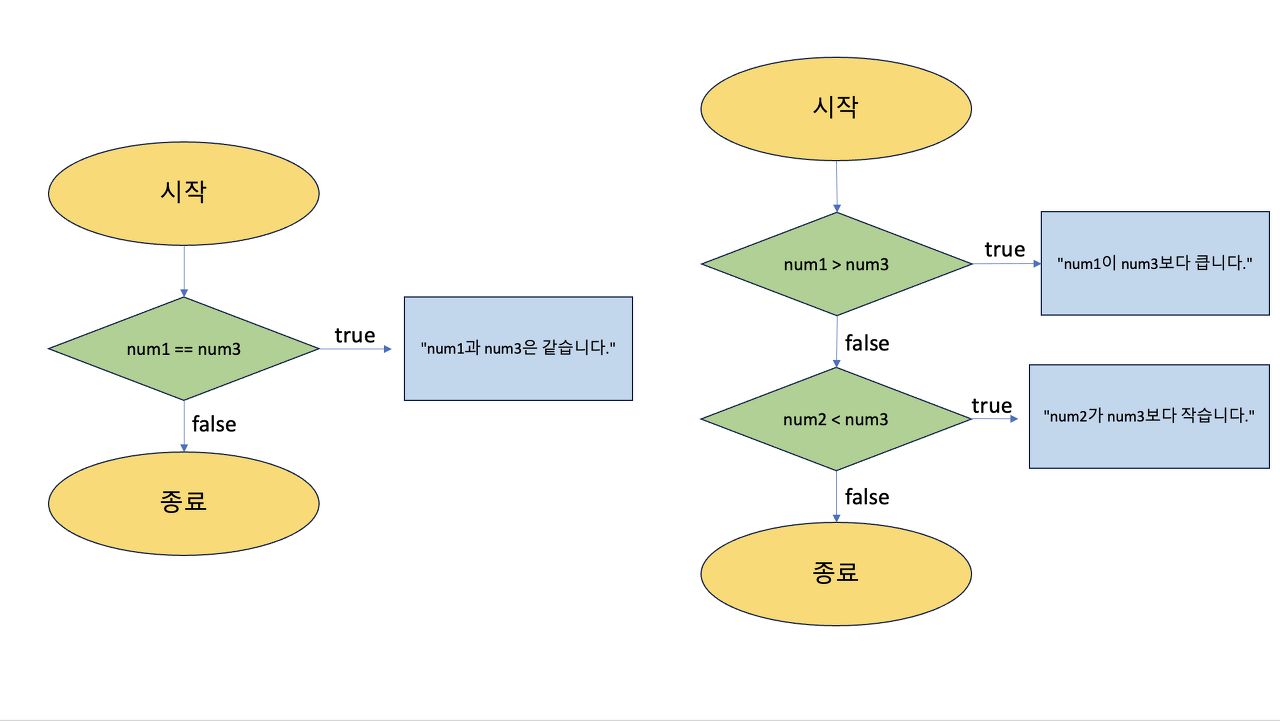 if (num1 > num3) { //if문은 거짓, else if문은 참이기 때문에 "num2가 num3보다 작습니다." 출력