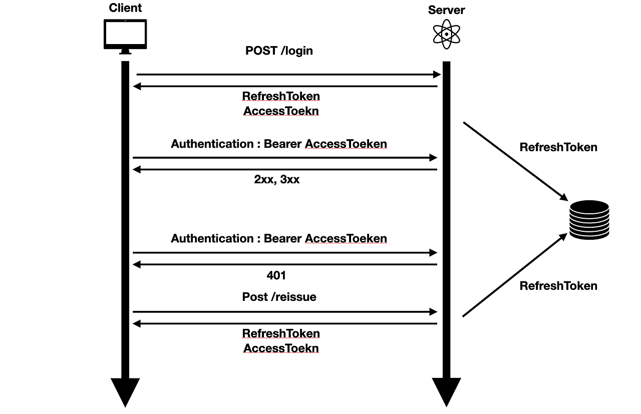 서버에서는 회원의 정보(id, password)가 적절한지 확인하고, 적절하다면 RefreshToken과 AccessToken을 발행한다.