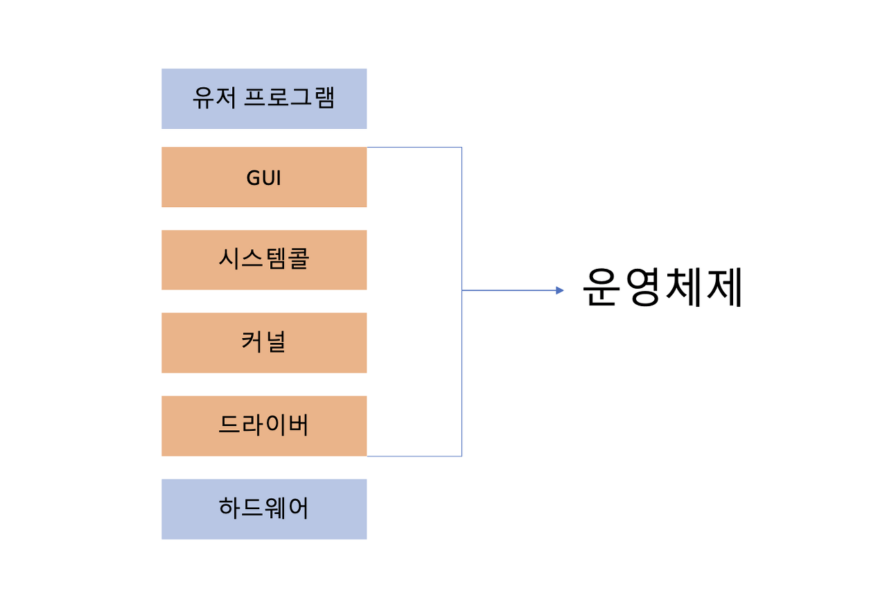 - 유저 프로그램(User Program) : 사용자가 작성한 응용 소프트웨어입니다. 운영체제 위에서 실행되며, 사용자의 요구에 따라 특정 작업을 수행합니다. 예를 들면 워드 프로세서, 웹 브라우저, 게임 등이 있습니다.