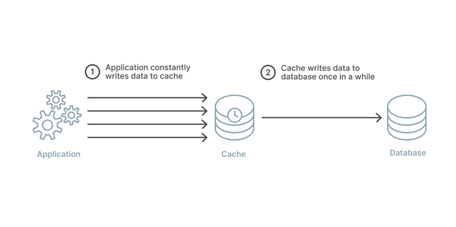 Write Back 패턴은 Write Through와 비슷하지만, cache에서 db로 배치 업데이트를 하는 식이다. 이 패턴도 Cache와 DB와의 정합성을 맞추는데 용이하다는 장점이 있다. 하지만 Cache에 있는 데이터가 아직 DB에 반영되지 않고, Cache가 죽을 경우 데이터가 유실될 위험이 있다.