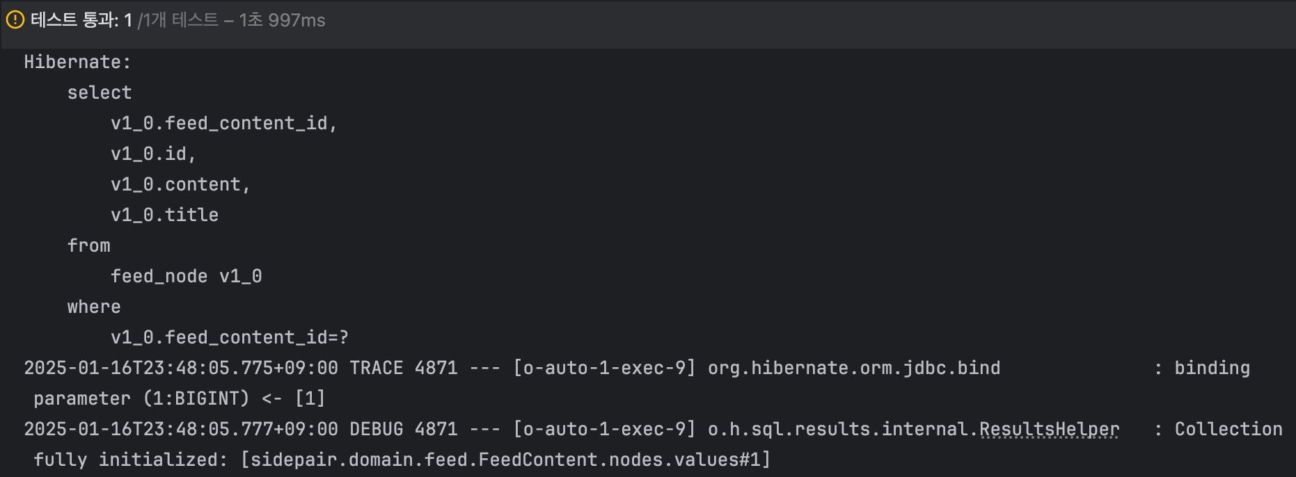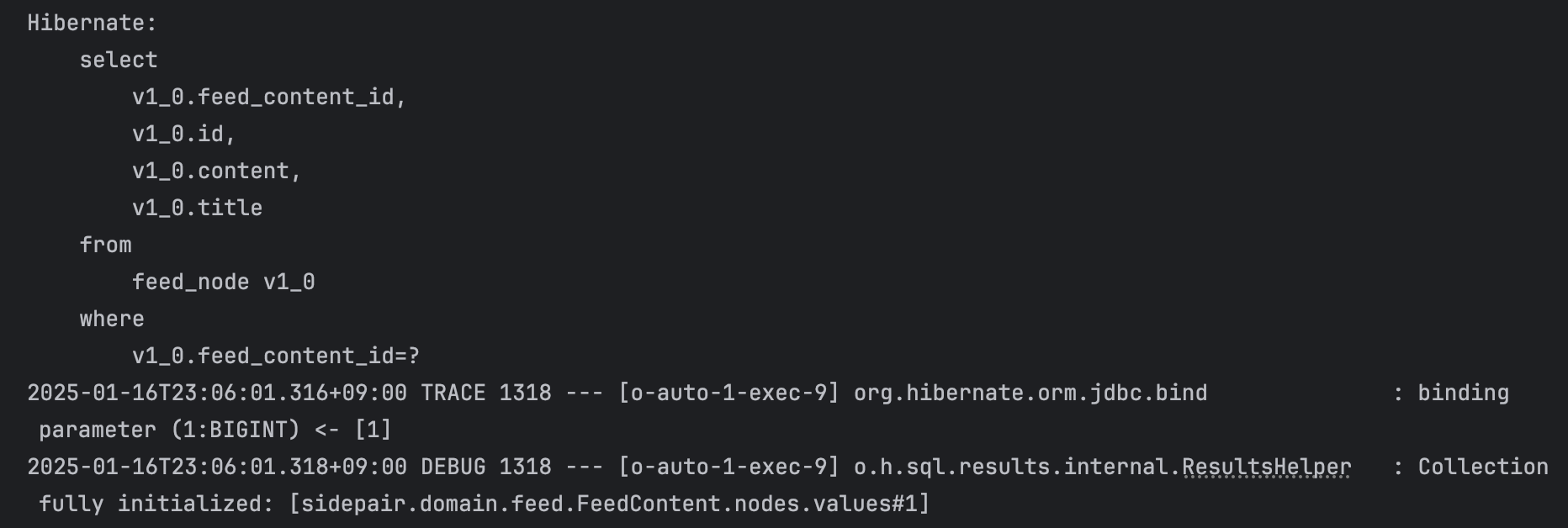 기본적으로 스프링에서 영속성 컨텍스트는 트랜잭션과 생명주기가 동일하기 때문에, feedContentRepository로부터 조회해온 FeedContent는 트랜잭션이 종료되면서 영속성 컨텍스트의 관리 범위에서도 함께 벗어나게 된다. 현재 피드 본문 엔티티는 준영속 상태가 되었음을 기억하자.