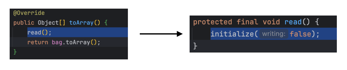 read() 라는 메서드를 따라 들어가다 보면, 어떠한 초기화 작업이 처음에 발생하는 것을 볼 수 있다.