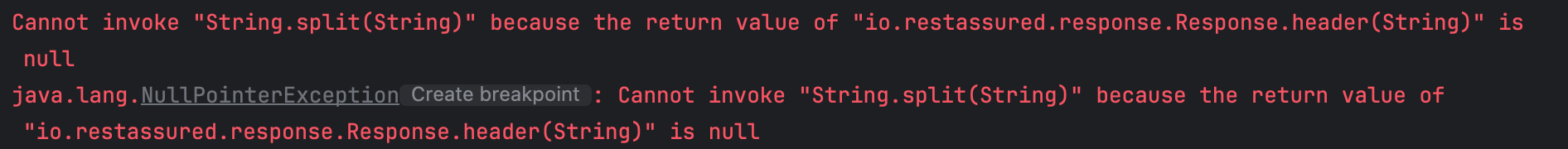 하지만, 정말 뜬금없이 NPE가 발생하는 것을 볼 수 있다. 이는, 응답값이 제대로 반환되지 않으면서 response header 값이 제대로 내려오지 않았기 때문이다.