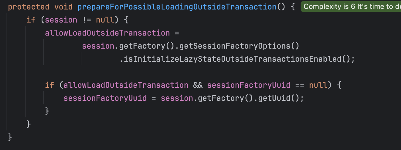 참고로, allowLoadOutsideTransaction의 경우 제일 처음 세션 정보를 세팅해줄 때 위의 메서드에서 적용된다. 세션 정보로부터 지연 로딩임에도 트랜잭션을 사용할 수 있는지 정보를 받아오는 것 같다.